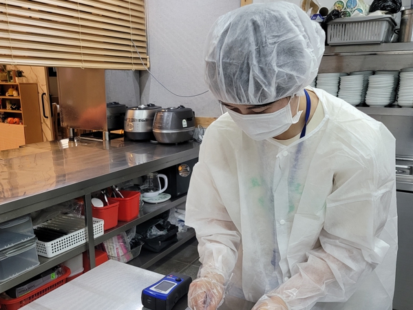 특히, 휴대용 세균측정기(ATP)를 이용해 조리 종사자의 손, 도마, 칼 등 조리 기구의 오염도를 계측하는 등 현장 맞춤형 식중독 예방 정보를 제공했다.