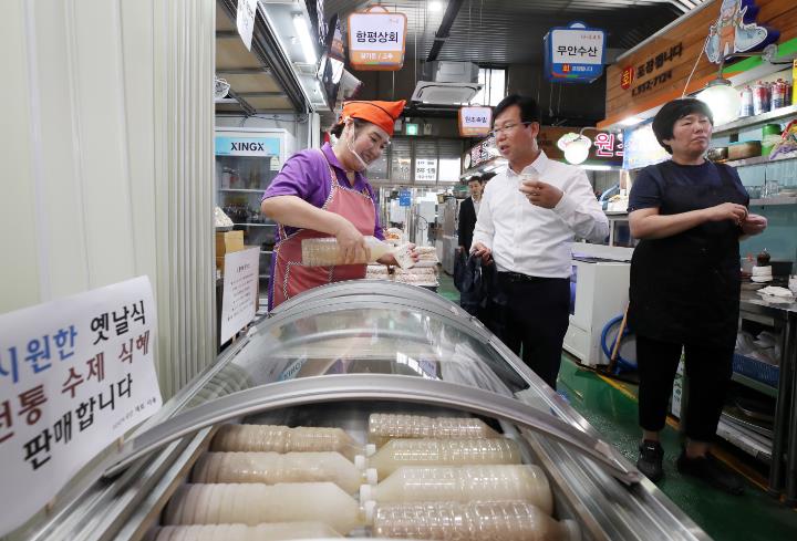 이날 오후 광산구 경제문화국 공직자들과 월곡시장을 찾은 박병규 청장은 온누리상품권으로 장을 보며, 시장 상인들의 목소리를 청취했다.