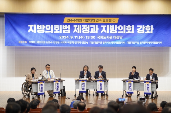 11일 국회도서관 대강당에서 더불어민주당 전국기초의회·광역의회의원협의회와 민주당 소속 국회의원들이 ‘지방의회법’ 제정을 위해 머리를 맞댔다.