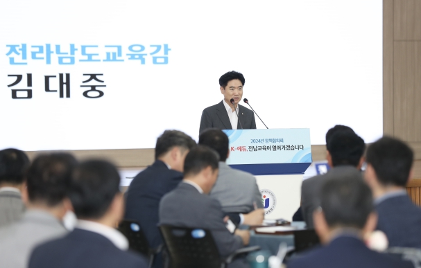 ![]() 김대중 전남교육감이 12일 청사 대회의실에서 열린 ‘2024년 9월 전남교육 정책협의회’에서 인사말을 하고 있다. |