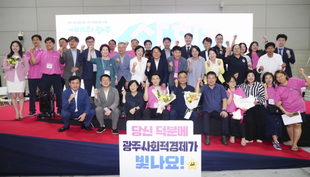 강 시장은 이날 사회적경제 활성화에 기여한 사회적기업(개인)에 유공자 표창을 수여했다. 유공자 포상 수여 기업은 박은경 ㈜링크21 대표이사, 강지창 ㈜엔아이디 대표이사, 김희경 오색빛협동조합 팀장, 박민지 사회적경제지원센터 주임, 임홍석 ㈜교육극단파랑새 대표이사, 주창진 ㈜케어탑 대표이사, 고경윤 위고마켓협동조합 이사장, 홍의덕 한전KDN㈜ 부장, 손미선 사회적협동조합 살림 연구원, 정현수 북구 일자리정책과 주무관, 유선영 광산구 시민경제과 주무관 등이다.