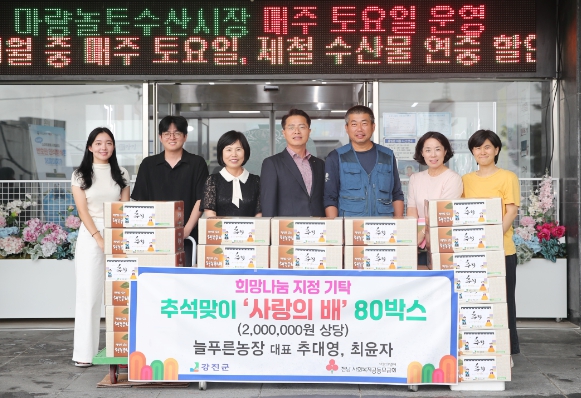 이번에 기탁된 배는 강진군 내 저소득층 가정에 전달될 예정이며, 추석 명절을 더욱 풍성하게 만들어줄 것으로 기대된다.