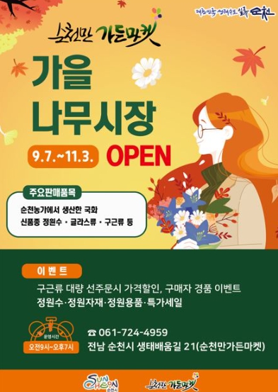 ![]() 순천만가든마켓(주) 가을 나무시장 정식 오픈 |