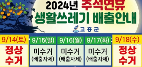 ![]() 고흥군, 추석 연휴 생활폐기물 처리 종합상황실 운영 |