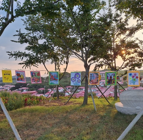 ![]() 섬 맨드라미정원에 어머니들 그림 전시 전경 |