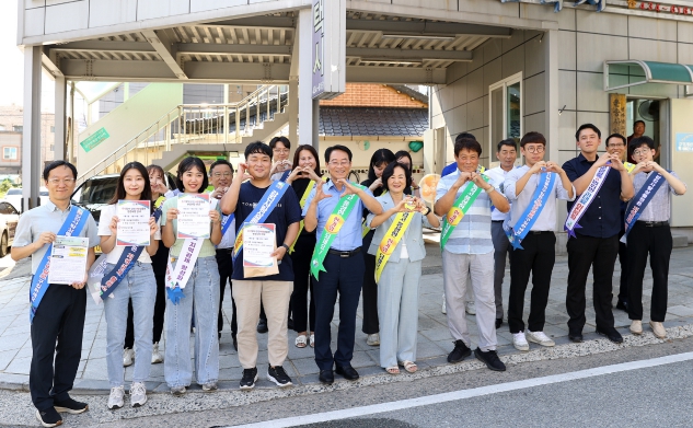 ![]() 강진원 강진군수와 강진군청 직원들이 추석을 앞두고 강진읍 중앙로 상가에서 하트를 만들어 보이며 지역경제 활성화를 다짐하고 있다. |