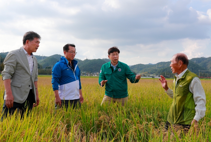 ![]() 보성군, 추석 연휴에도 ‘벼멸구와의 전쟁’ 피해 확산 방지 총력_김철우 군수와 문금주 국회의원, 문병완 농협조합장이 피해 농민들 만나 애로사항을 경청하고 지원 및 당부 사항을 전달하고 있다. |