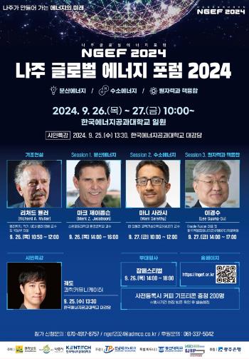 나주글로벌에너지포럼2024는 오는 26일과 27일 이틀에 걸쳐 광주·전남 공동(나주 빛가람) 혁신도시에 위치한 한국에너지공과대학교 일원에서 열린다.