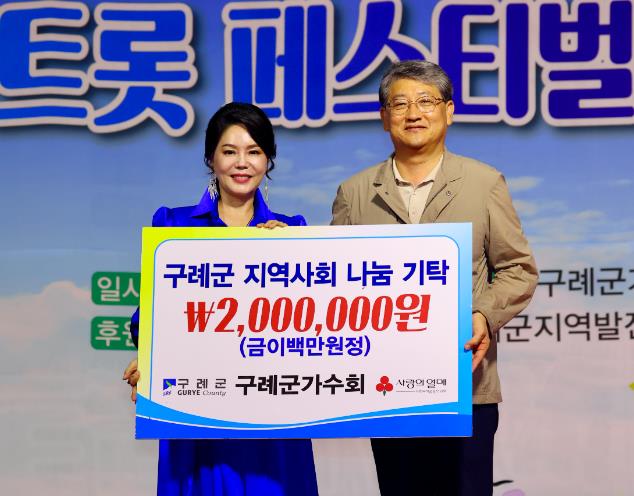 구례군가수회는 추석을 앞두고 군민화합의 장을 마련하기 위해 '2024 구례 트롯 페스티벌 및 읍·면 노래자랑' 행사를 주관했으며, 이 행사와 더불어 기부금을 전달하며 따뜻한 이웃사랑을 실천했다.