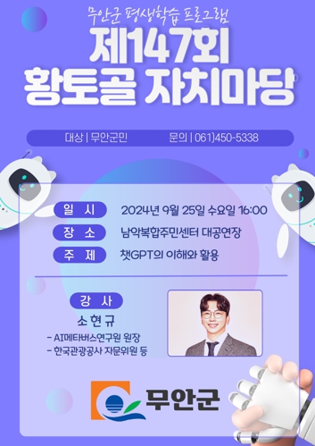 ![]() 무안군, 소현규 AI메타버스연구원장 초청 ‘제147회 황토골 자치마당’개최 |