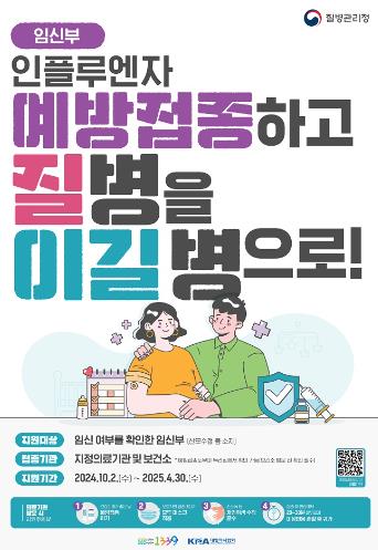20일부터 생애 첫 인플루엔자 접종 대상 어린이를 시작으로 △어린이 1회 접종 대상자와 임신부는 10월 2일 △75세 이상은 10월 11일 △70세부터 74세는 10월 15일 △65세부터 69세는 10월 18일부터 순차적으로 지정의료기관에서 무료 인플루엔자 예방접종을 시행한다.