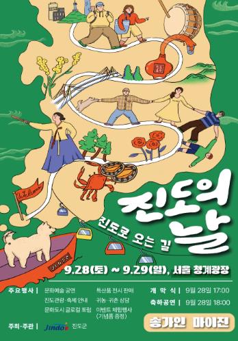 행사 첫날인 28일 오후 5시에는 개막식과 함께 진도 출신 인기 가수 송가인과 마이진이 축하공연으로 무대를 빛내고, 행사 기간에는 진도아리랑, 강강술래, 북놀이, 씻김굿 등 전통예술 공연과 함께 진도군의 농수특산품이 전시‧판매되며, 관광지, 축제 홍보와 함께 귀농‧귀촌 상담, 고향사랑기부 홍보 부스(공간)도 운영된다.