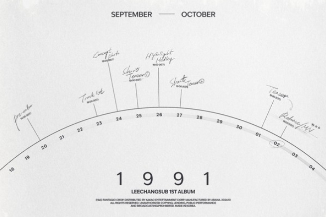 이창섭은 지난 19일 오후 공식 SNS를 통해 첫 번째 솔로 정규앨범 ‘1991’의 스케줄러 이미지를 공개했다.