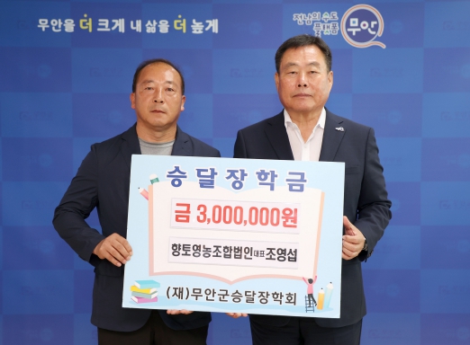 김산 군수는 “지역인재 육성을 위한 장학금을 기탁해주셔서 감사드린다”며 “맡겨주신 장학금은 지역 인재들이 건강하게 성장하며 무안 발전을 이끄는 리더로 성장할 수 있도록 장학사업에 유용하게 사용하겠다”고 말했다.