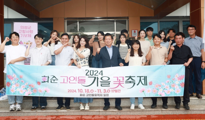 한편, '2024 화순 고인돌 가을꽃 축제는 유네스코 세계문화유산 화순 고인돌유적지 일원 4㏊에 이르는 광활한 공간에 국화·코스모스·해바라기·맨드라미 등 경관 작물 10종을 식재하고, 핑매바위 형상의 꽃 조형물 등 68종 174점을 축제장 곳곳에 배치하여 관광객들을 맞이할 예정이다.