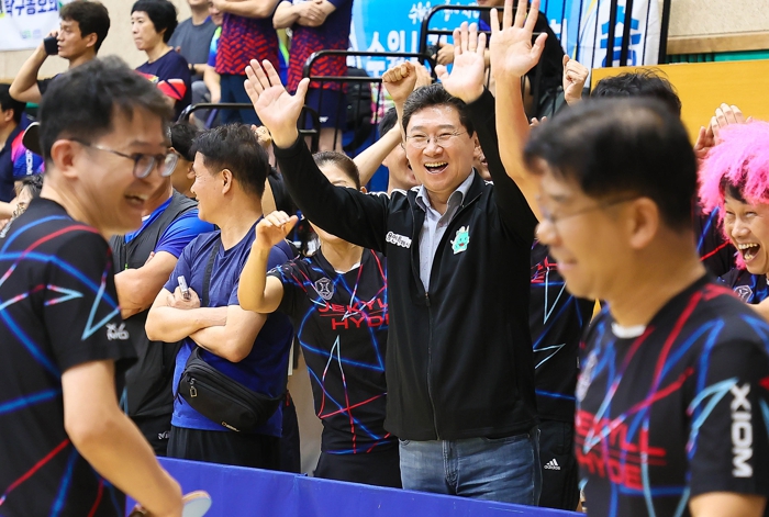 ![]() 이상일 용인특례시장이 9월 20일 열린 '제22회 경기도 공무원 친선 체육대회' 탁구 경기장에서 공직자들을 응원하고 있는 모습. |