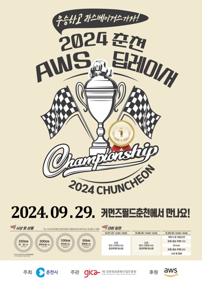 ‘2024 춘천 AWS 딥레이서 챔피언십’ 결승 대회가 오는 29일 오전 10시 커먼즈필드 춘천에서 펼쳐진다.