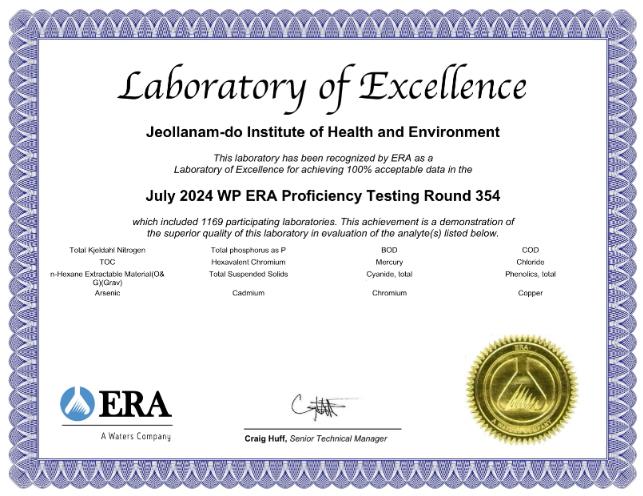 전남 동부권 국가산단 환경오염사고 대응체계 확보를 목적으로 2018년 설치된 전남보건환경연구원 동부지원은 전 세계 정부 기관과 연구소, 민간 분석기관이 참여하는 국제숙련도 평가에서 7년 연속 최우수기관으로 인증받았다.