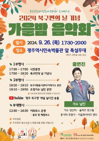 ![]() 2024년 북구민의 날 기념 가을밤 음악회 포스터 |