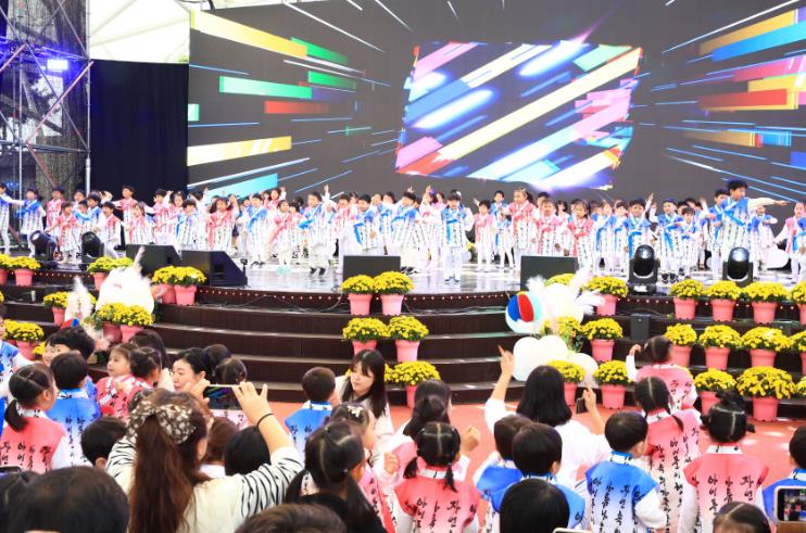 ![]() 관내 어린이들이 어린이대축제 개막식 공연을 하고 있다 |