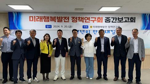 이날 보고회에는 미래행복발전 정책연구회 회원을 비롯해 본 연구용역의 수행하고 있는 (사)한국정책학회 연구진과 관계 공무원들이 참석하여, 연구의 중간 성과를 공유하고 향후 과제에 대해 심도 있는 논의를 진행했다.