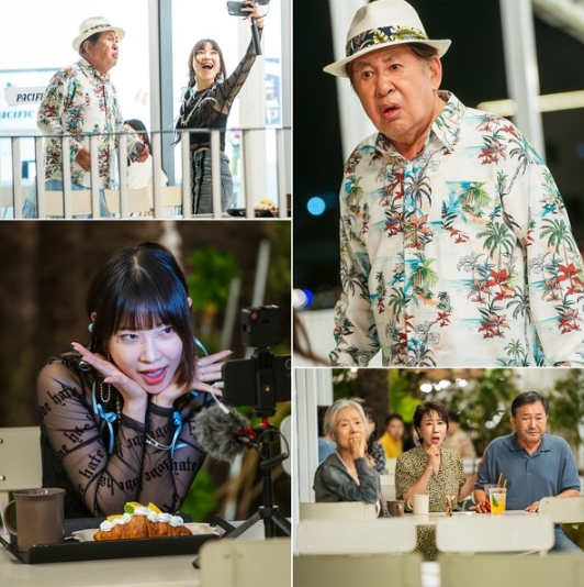 공개된 스틸에는 거제도의 한 카페에 일제히 모인 김용건, 예수정, 임채무, 송옥숙 ‘시니어 4인방’의 모습이 담겼다. 한쪽 구석에는 유명 크리에이터로 변신, 핸드폰을 앞에 두고 라이브 방송을 진행 중인 배우 김아영의 모습이 담겨 있어 놀라움을 자아낸다.