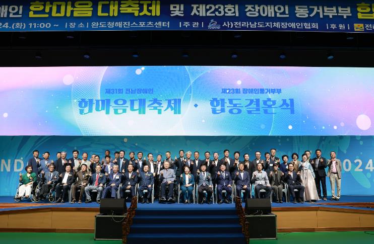 전남도와 완도군이 함께 주최하고 (사)전남지체장애인협회가 주관하는 이번 행사는 완도청해진스포츠센터에서 기념식과 합동 결혼식, 어울림 한마당 잔치 등이 진행됐다.