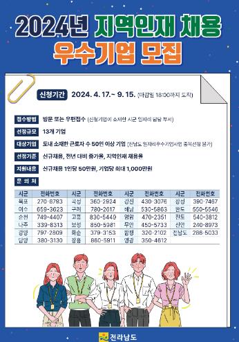 ![]() 담양군, ‘2024년 지역인재 채용 우수기업 지원사업’ 신청기업 모집 |