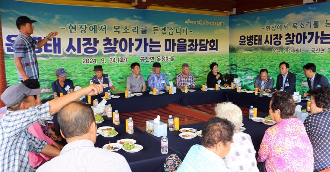 좌담회엔 노성수 마을이장, 노성열 노인회장, 이인숙 부녀회장을 비롯해 주민 30여명이 참석해 ‘마을 진입로 옹벽 설치’, ‘마을 우산각 보수·철거’ 등을 요청했다.