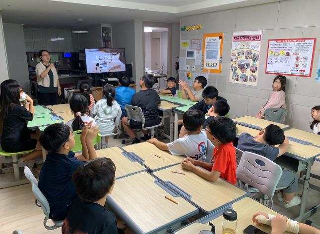 ![]() 지난 24일 매곡지역아동센터에서 아동과 청소년을 대상으로 진행된 사회적경제교실 |