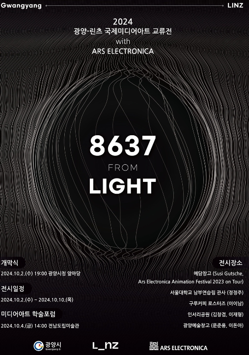 ‘빛으로부터 8637’을 제목으로 정한 광양-린츠 국제미디어아트 교류전은 세계적인 축제 ‘아르스 일렉트로니카 페스티벌’로 널리 알려진 아르스 일렉트로니카 센터와 광양시와 공동으로 주최하는 미디어아트 전시 교류전이다.
