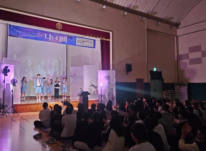 군은 사전 참여 신청을 한 관내 5개 학교 재학생 및 교직원 400여 명을 대상으로 학생들의 눈높이에 맞춘 공연을 진행해 큰 호응을 받았다.