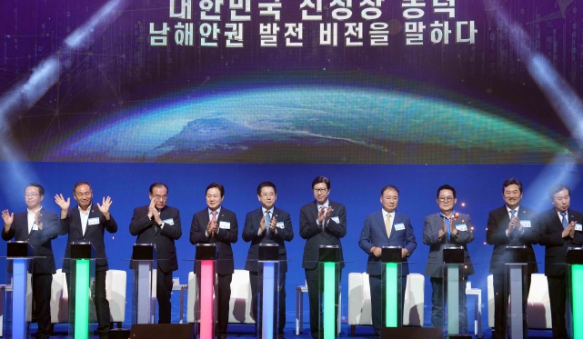 대한민국 신성장 동력, 남해안권 발전 비전을 말한다’를 주제로 진행된 이날 행사는 전남, 경남, 부산 시·도지사가 남해안권 발전을 위한 비전과 지역 현안들에 대해 논의하는 정책 토크쇼에 이어 전문가 주제발표 및 패널토론 순으로 진행됐다.