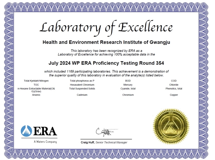 정현철 광주보건환경연구원장은 “광주보건환경연구원이 수질과 토양분석 분야에서 세계적 수준임을 다시 한번 확인했다”며 “앞으로도 국제적 신뢰를 바탕으로 분석 분야에서 우수성을 유지하고 지속적인 발전을 위해 최선을 다하겠다”고 말했다.