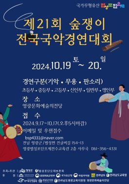 ![]() 영광군, 2024년 제21회 숲쟁이 전국 국악경연대회 개최 |