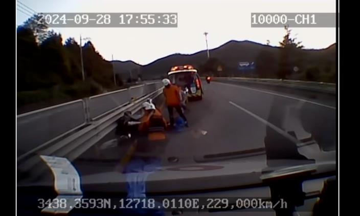 전남소방본부에 따르면 고흥소방서 고흥119안전센터 강미경 소방사는 이날 17시 45분경 야간 출근 중 고흥군 두원면 왕복 4차선 도로상에서 오토바이 교통사고가 발생한 현장을 목격했다.