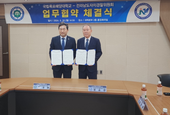이날 업무협약에는 정순관 전라남도자치경찰위원회 위원장과 한원희 목포해양대학교 총장을 비롯한 위원회와 대학 관계자가 참석했다.