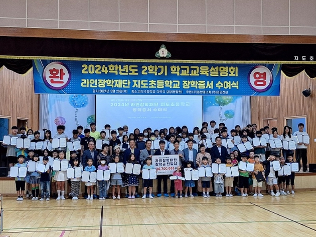 지도초등학교 정일영 교장은 “이번 장학금은 학생들에게 큰 격려와 힘이 될 것”이라며 “아이들이 밝고 건강하게 성장할 수 있도록 지도초등학교도 최선을 다하겠다”라고 감사의 뜻을 표했다.