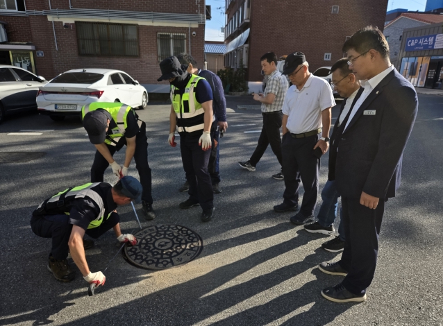 이에 하수과 공무원들은 현장팀을 불러 현장에 대한 세밀한 점검을 실시했다. 집수정에 연결된 관들의 크기를 확인하고 우수 관로들을 확인했다. 민원 해결을 위해 면밀한 조사와 조치가 필요할 것으로 판단하고 향후 관로 내부 확인과 준설, 집수정 확장, 배수구 빗물받이(스틸 그레이팅)의 추가 설치 등의 방안을 마련하기로 약속했다.
