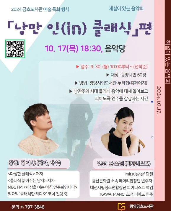 ![]() 광양금호도서관, 가을을 맞아 '해설이 있는 음악회' 운영 |
