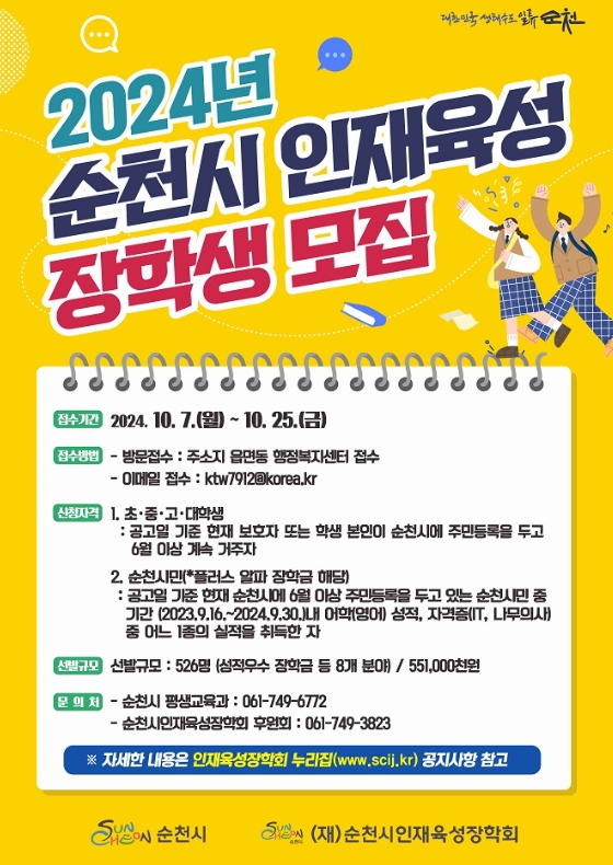 ![]() 2024년 (재)순천시인재육성장학회 장학생 모집 |