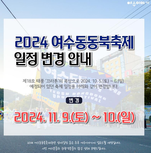 ![]() ‘여수 동동북축제’ 태풍 북상으로 연기 |