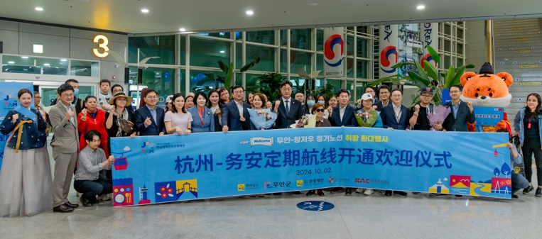 이번 정기노선은 지난 7월 중국 항저우에서 열린 전남 관광설명회 및 무안-항저우 정기노선 취항을 위한 업무협약에 따른 것으로 정기적으로 주 2회(수·일) 운항한다.