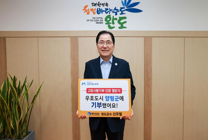 신우철 완도군수는 “지난 5월 우리 군과 우호 도시인 양평군 직원들 간 상호 기부에 이어 고향사랑기부제 활성화를 위한 챌린지에 동참하게 돼 뜻깊게 생각한다”면서 “지역 발전의 밑거름이 될 고향사랑 기부 문화가 확산되길 바란다”라고 말했다.