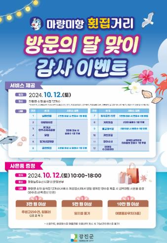 ![]() 강진 ‘마량 미항횟집거리 방문의 달’맞이 감사 이벤트 |