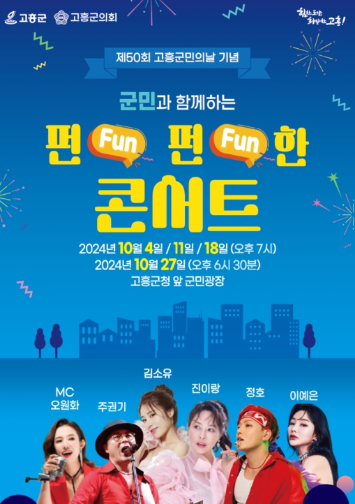 이번 공연은 제50회 고흥군민의 날을 기념해, 군민들에게 더 많은 문화예술 향유 기회를 제공하기 위해 ‘군민의 날 전야제’ 행사를 대체하여 진행된다.
