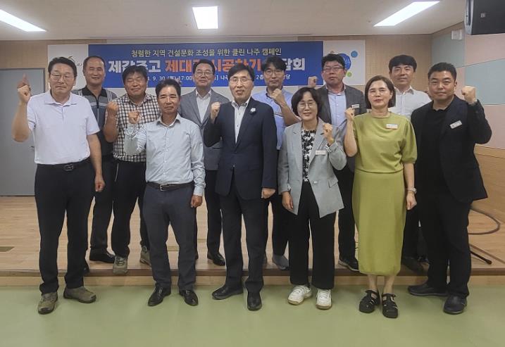 나주시는 최근 시 가족센터 다목적강당에서 공무원, 건설 관련 협회 회원 등이 참석한 가운데 ‘제값 주고 제대로 시공하기’ 차담회를 실시했다고 4일 밝혔다.