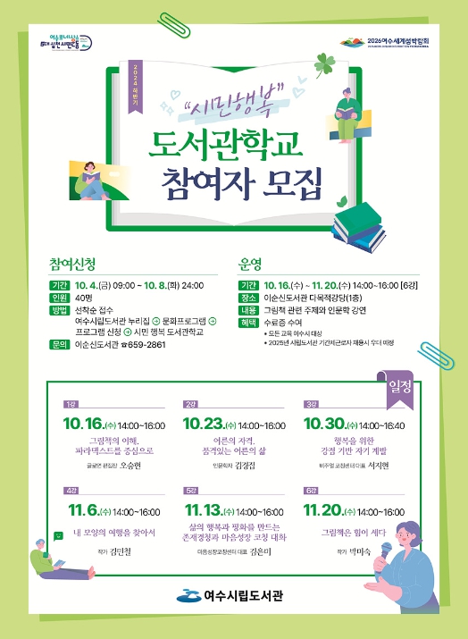 ![]() 여수시립도서관, 하반기 ‘시민 행복 도서관학교’ |