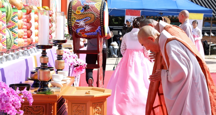 ![]() 강진 무위사 대적광전 앞에서 5일 수륙대재가 봉행됐다. |