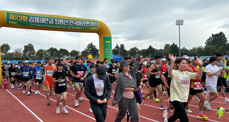 먼저 지난 3일 개최됐던‘제23회 김제새만금 지평선 전국마라톤대회’는 비가 내리는 궂은 날씨에도 불구하고, 역대 인원인 5,000여명의 선수들이 참가해 김제 일원을 마라토너들의 도전 정신으로 가득 채웠다.